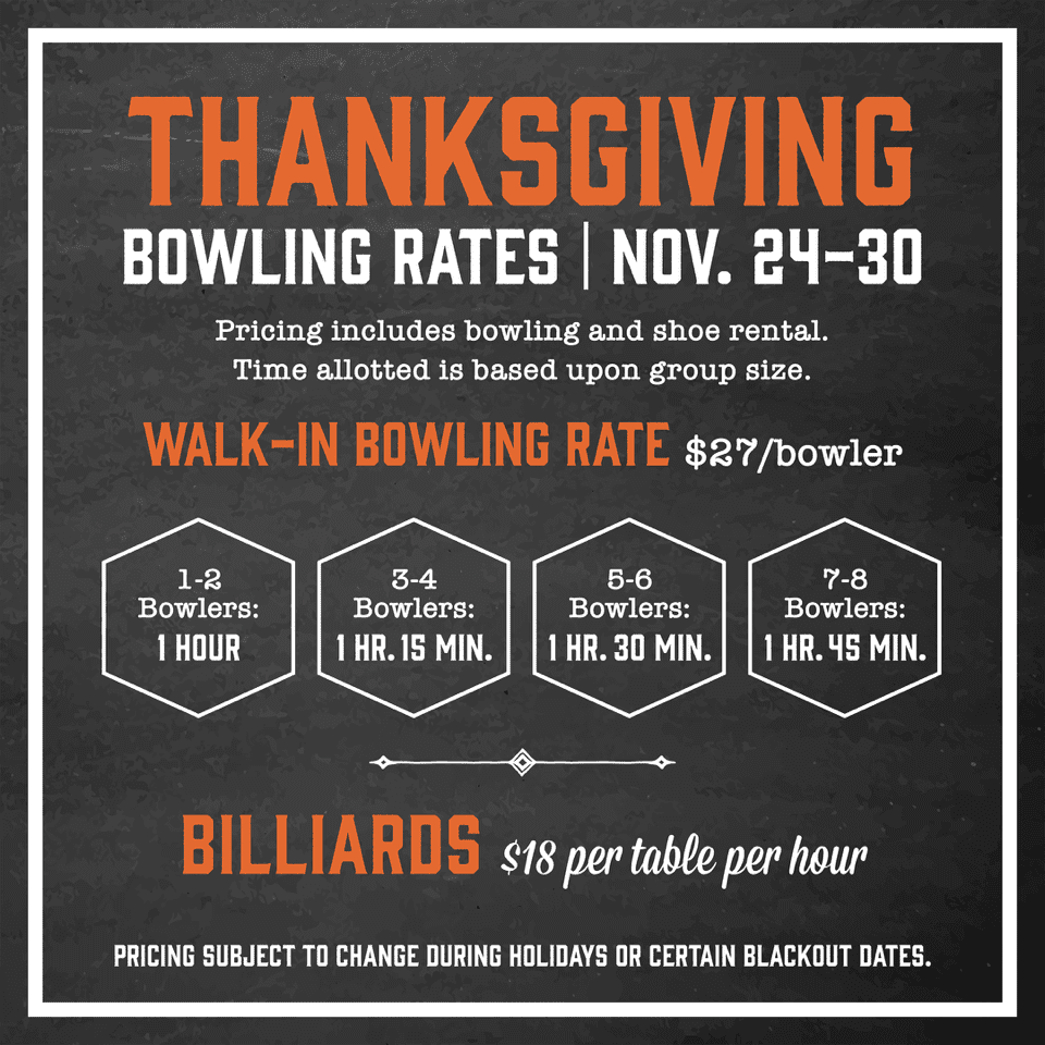 * 50% off Bowling & Billiards (Includes Shoe Rental)